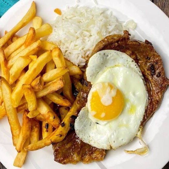(Foto ilustrativa) Bife de ancho grelhado ,arroz, feijão, ovo frito e batata frita.