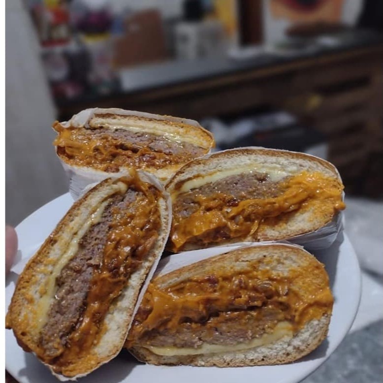 Pão Brioche, 2 hambúrguer, 130g de queijo prato.
