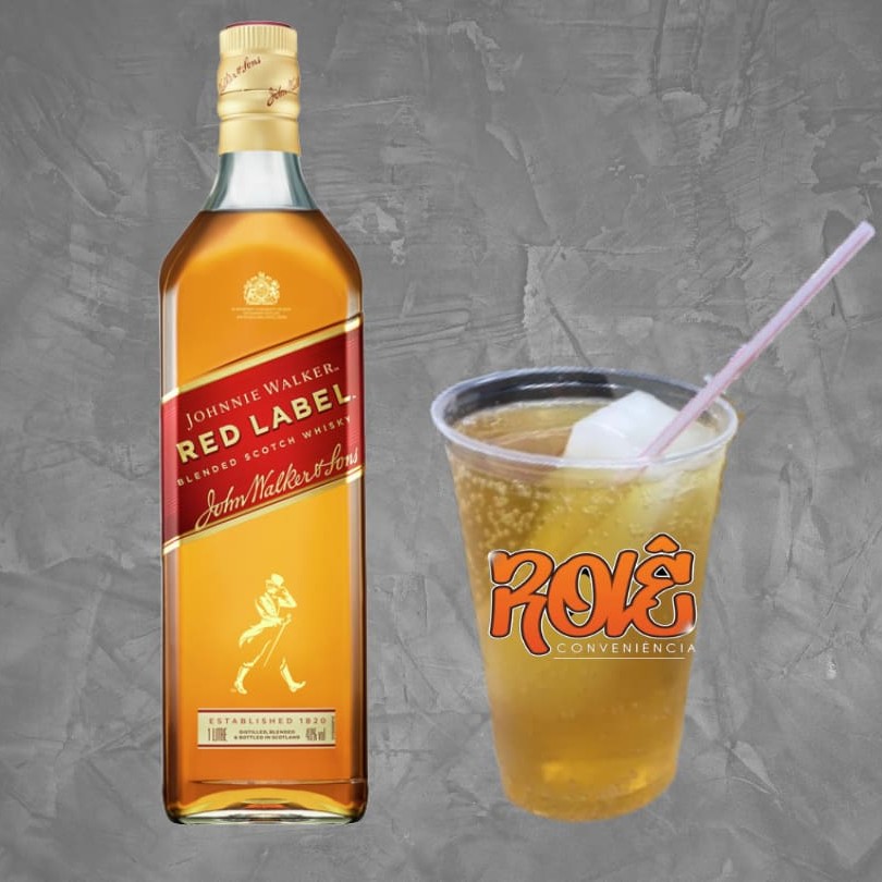 1 dose de whisky (60ml), gelo de coco e energético fúria em um copo de 770ml.