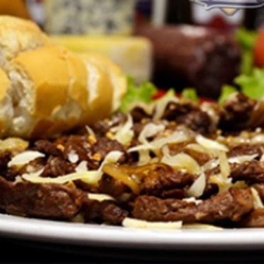 Porção De Contra Filet Acebolado Retocado Com Mussarela E Batatas Fritas