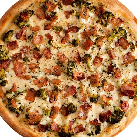 Delicie-se com a nossa exuberante 'Pizza de Brócolis com Alho e Bacon', um destaque na categoria 'Promoções'. Cada fatia é generosamente coberta com um molho à base de tomate, perfeitamente equilibrado com uma generosa camada de mussarela derretida. O brócolis fresco e crocante, juntamente com o alho, adiciona uma dimensão de sabor inigualável, que é divinamente complementada pelo bacon crocante e saboroso. Este trio de sabores se harmoniza de forma sublime, oferecendo uma experiência gastronômica única. Para completar, azeitonas pretas são distribuídas por toda a pizza, trazendo um toque mediterrâneo que intensifica a experiência de sabores. Uma pizza irresistível que combina sofisticação e sabor de maneira surpreendente.