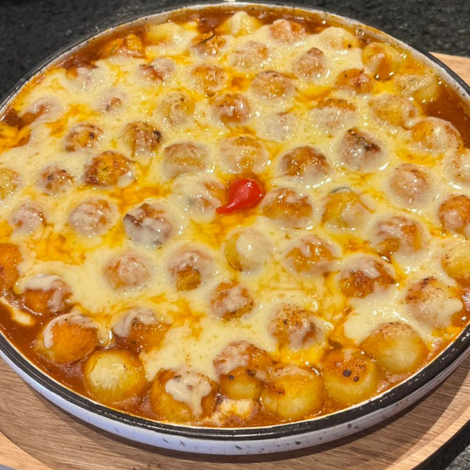 nhoque recheado com molho ao sugo e queijo