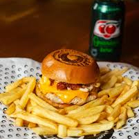 humburguer 180 gr pao brioche alface bacon e queijo chedar e fritas