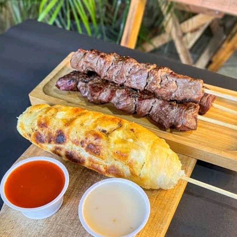 Combo 3: 1 Espetinho Linguiça + 1 Espetinho Alcatra + Pão De Alho