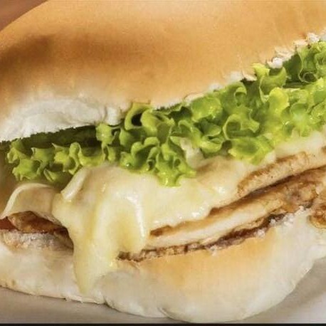 Baguete recheada com filé de frango, queijo mussarela derretido e vinagrete.