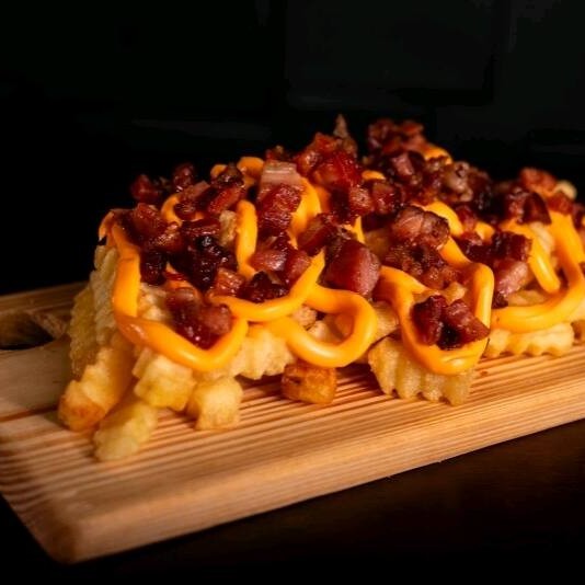 Batatas fritas crocantes, Molho cheddar cremoso, Finalizado com bacon crocantes em cubos .Obs: As mesma são pesadas Inatura, ou seja ao fritar, elas perdem liquido e principalmente peso.