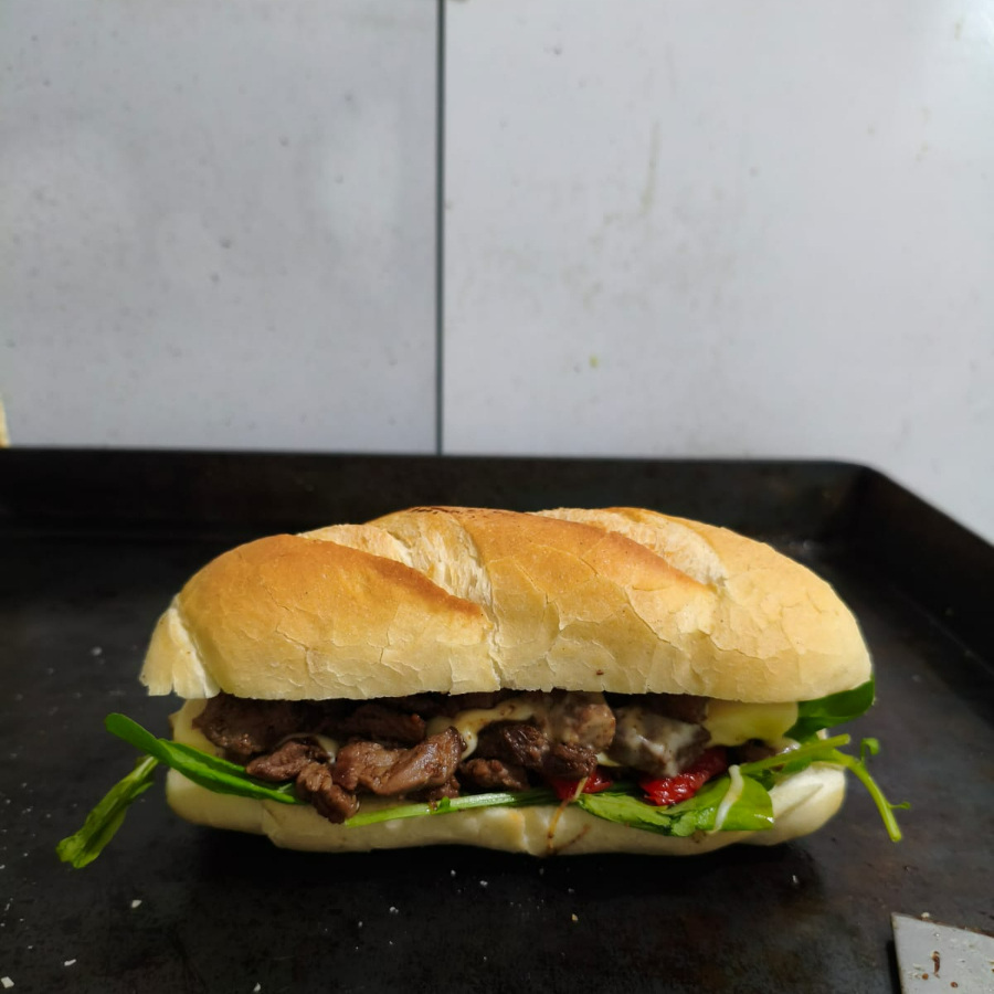 delicioso lanche de alcatra , Queijo Canastra, Tomate seco e Rúcula fresca + 1 Coca-Cola 200ml na Faixa.