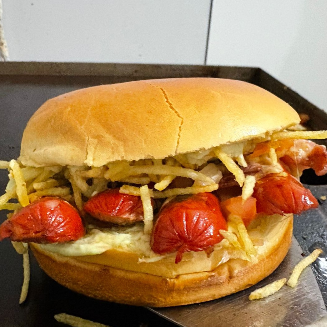 pão brioche smash amanteigado, salsicha perdigão, queijo canastra derretido ,bacon fatiado vinagrete e batata palha. Acompanha molho da casa