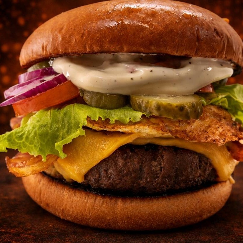 Uma experiência completa para quem quer o máximo de sabor. Pão brioche macio e dourado, hambúrguer Angus suculento de 200g grelhado no ponto perfeito, coberto com bacon crocante e o queijo da sua escolha — American Cheese cremoso, Blue Cheese intenso ou American Cheddar marcante. Recebe ainda alface fresca, tomate, cebola roxa, picles e ovo, criando uma combinação rica em texturas e personalidade. Finalizado com nosso exclusivo molho grill, que transforma cada mordida em algo simplesmente inesquecível.