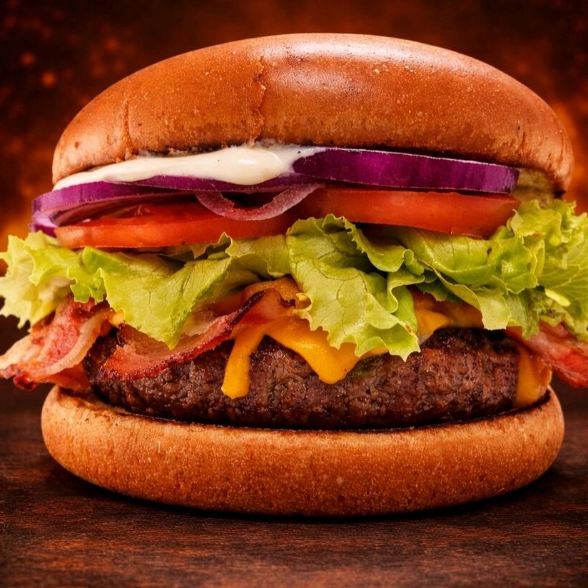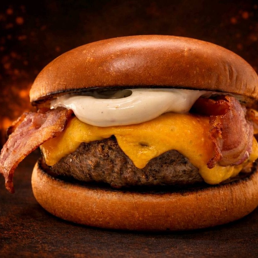 Nosso clássico irresistível começa com pão brioche macio e dourado, hambúrguer Angus suculento de 200g grelhado no ponto perfeito e fatias generosas de bacon crocante, trazendo sabor e textura incomparáveis. Finalizado com o queijo da sua escolha — American Cheese cremoso, Blue Cheese intenso ou American Cheddar marcante — e nosso exclusivo molho grill, que completa tudo com um toque especial. Um burger clássico, robusto e simplesmente inesquecível.