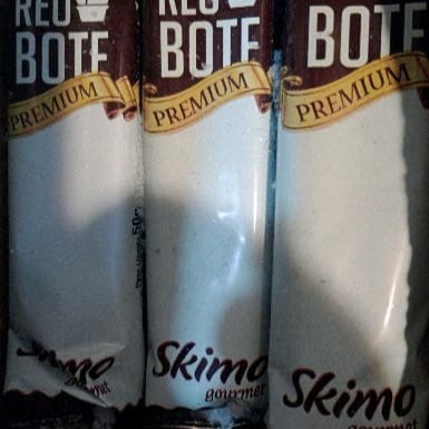 Clássico picolé sabor Skimo, casquinha crocante de chocolate e sabor de nata!