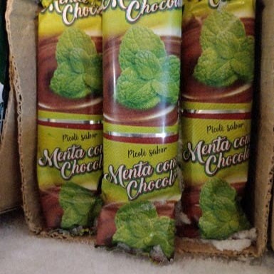 Picolé sabor menta com recheio externo de chocolate crocante!