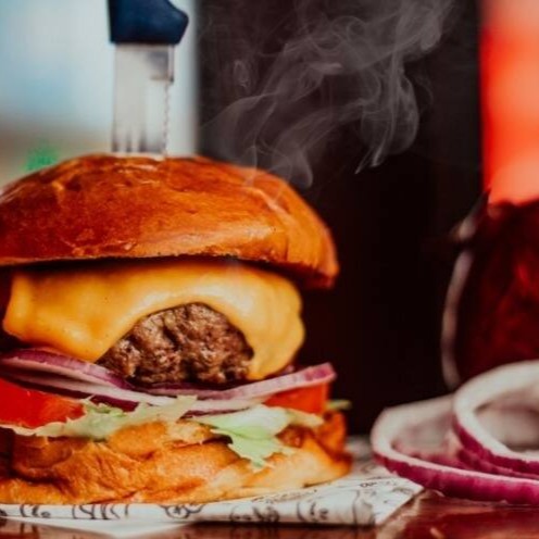 Pão brioche, 2 hambúrgueres da casa 180g, molho especial, queijo prato, cheddar ou Catupiry, molho barbecue, alface, tomate e cebola roxa
