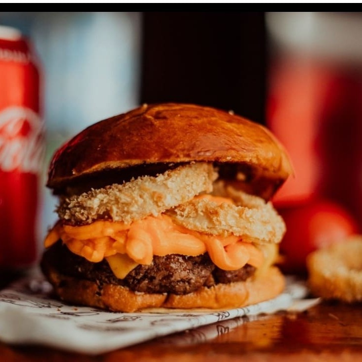 Pão brioche, hambúrguer da casa 180g, molho especial, queijo prato, cebola onion rings, Catupiry ou cheddar e molho barbecue