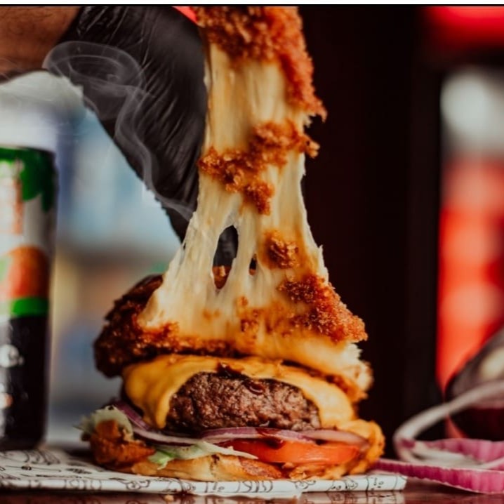 Pão brioche, hambúrguer da casa 180g,deleicioso Catupiry empanado frito , molho especial, queijo prato, barbecue, alface, tomate e cebola roxa