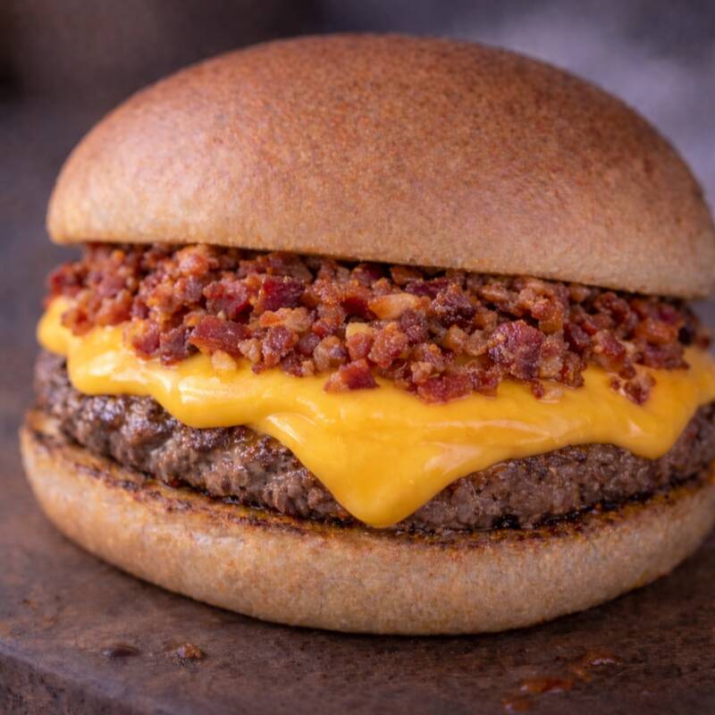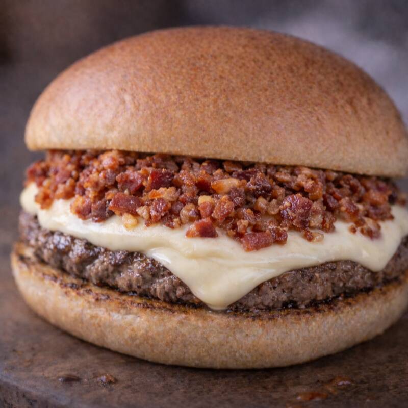 Pão de brioche + hamburguer 80g prensado + cheddar cremoso + bacon + maionese artesanal