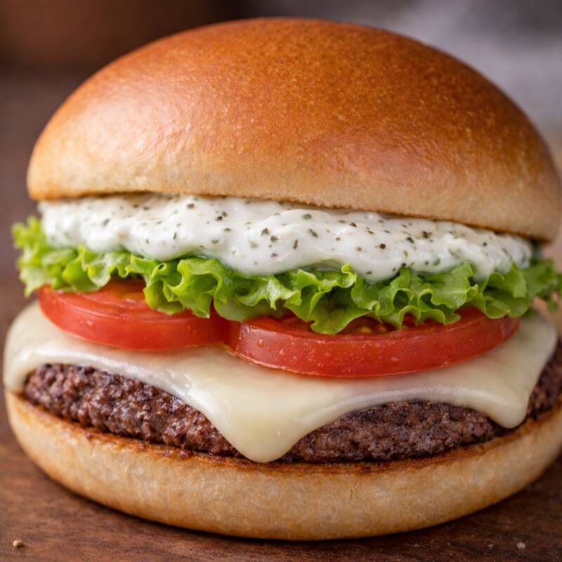Pão de brioche + hamburguer 80g prensado + queijo mussarela + alface + tomate + maionese artesanal
