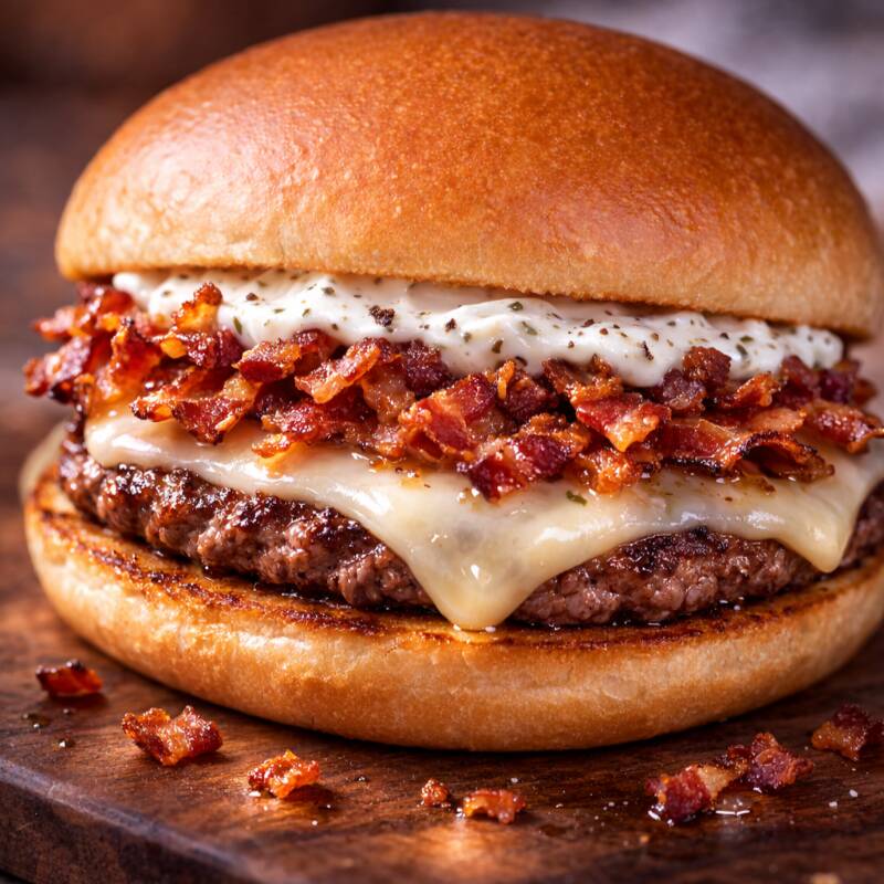 Pão de brioche + hamburguer 80g prensado + catupiry + bacon + maionese artesanal