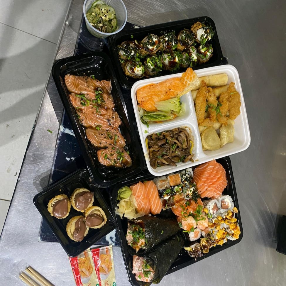 Entrada quentes & Frias 2 harumaki de queijo 2 harumaki de chocolate 2 harumaki de legumes 2 guiosa de carne bovina 2 camarão empanado 2 lula 5 hot rool Filadélfia 5 hot rool mineiro com couve frita 4 hot rool de banana chocolate de avelã 1 mini porção de shimeji 1 mini porção de teppan 1 salada de sonomono oriental japonesa 1 carpaccio de salmão ao molho ponzu 5 fatias Combinado de sushi completo 6 sashimis de salmão fresco 2 uramaki de salmão grelhado com Doritos 2 uramaki de salmão Filadélfia com couve 2 uramaki Filadélfia 2 uramaki de camarão empanado do chefe 2 hossomaki de salmão 2 hossomaki de salmão grelhado com geleia de pimenta 2 niguiri de salmão tradicional 2 niguiri skim de pele de salmão 2 Joy de salmão 2 Joy de geleia de goiabada Temakis variados 2 mini temaki variados a sua escolha