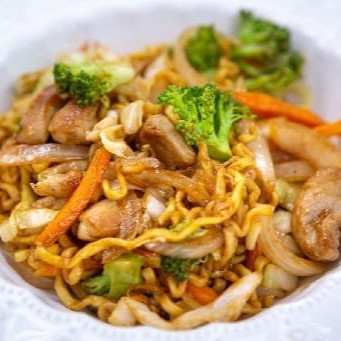 Yakisoba de frango com legumes e macarrão ao molho japonês ao toque do chef