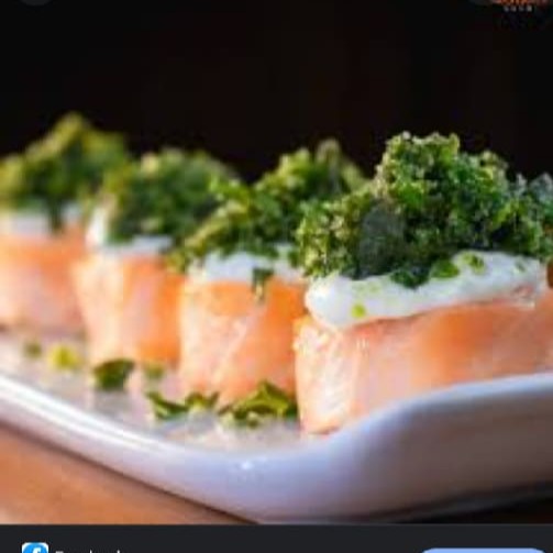 8 fatias de salmão macaricado com molho do chef