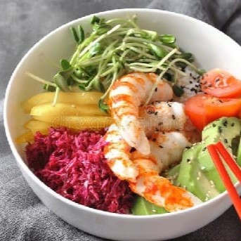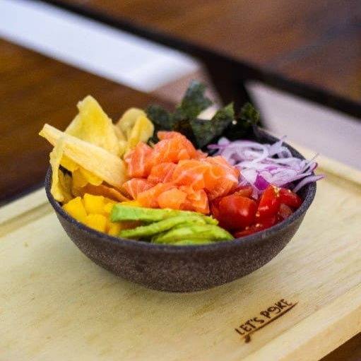 Salmão Cebola roxa Tomate cereja Limão Laranja Shoyu Tempero do chefe