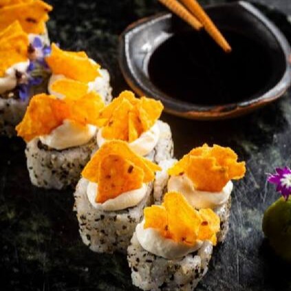 Hot roll de salmão com cream cheese Doritos ao toque do chefe