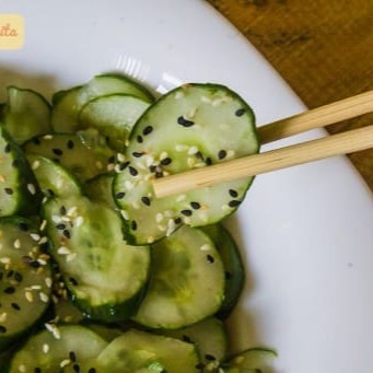 Sunomono e uma saladinha de pepino com molho japonês e gergelim moido