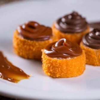 10 unidades de lula empanada e temperada ao toque do chef com molho de geleia de pimenta