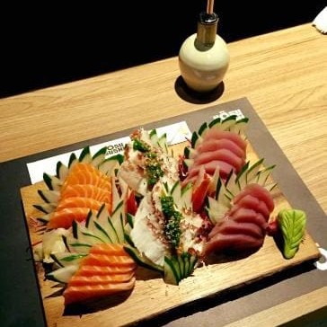 5 sashimi de salmao massaricado 5 sashimi de salmao 4 joy especial de camarao 4 niguri salmao 4 uramaki de camarao 4uramaki de salmao 4 hossomaki de camarao 4 hossomaki de salmao 10 hot rool variados