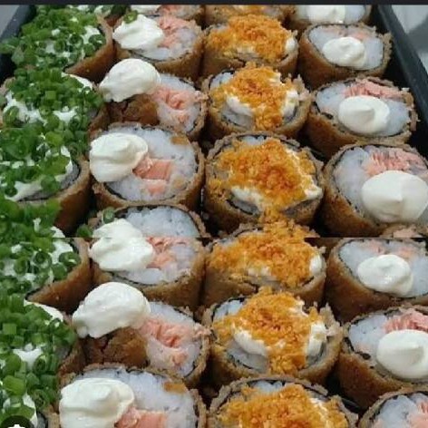 São 50 hot rool variados 10 hot rool Filadélfia 10 hot rool mineiro de couve frita 10 hot rool de Doritos 10 hot rool de chips de batata doce