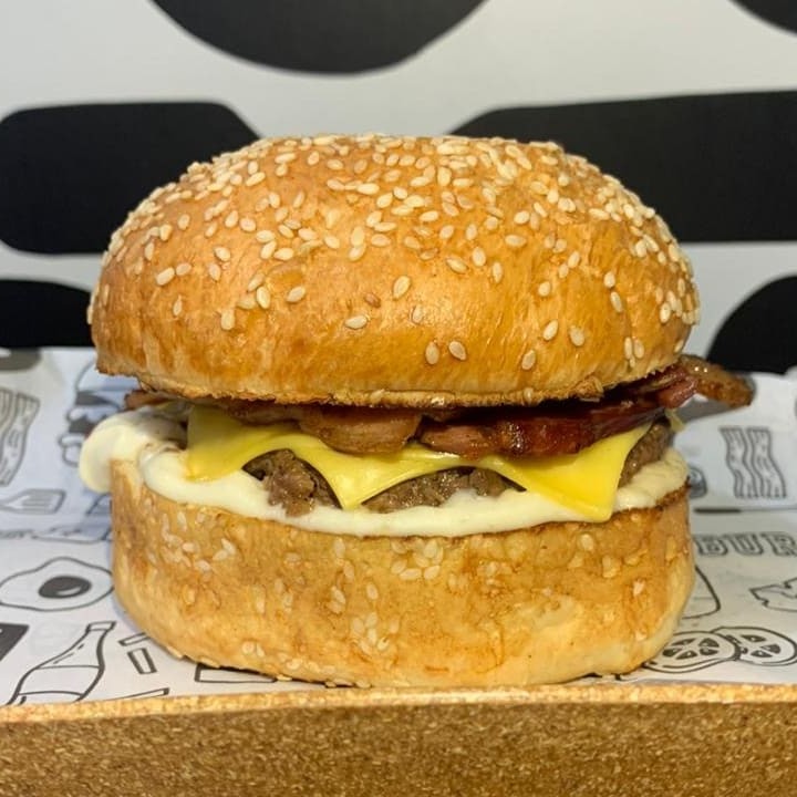 Pão Uai, delicioso smash bovino (100g), queijo prato, muito bacon e maionese da casa