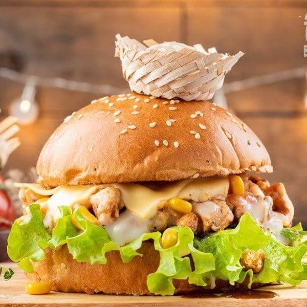 Pão Uai, frango (150g), Catupiry, queijo prato, alface, tomate, cebola, milho e maionese da casa
