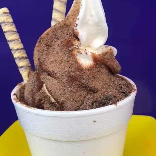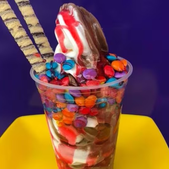Delicioso blend de recheios com nosso cremoso sorvete de baunilha