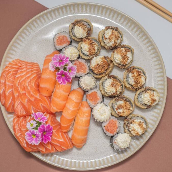 Apresentamos o 'Yamamoto 58 peças', um combinado perfeito para os amantes de sushi. Composto por 20 saborosos sashimis de salmão fresco, 8 niguiris de salmão delicadamente cobertos com tare e gergelim, 4 jyos de salmão combinados com cremoso cream cheese, 8 uramakis de salmão e cream cheese, e mais 8 hossomakis de salmão com cream cheese. E para finalizar, 10 hot rolls tradicionais que prometem agradar. Todos os nossos pratos são feitos com os ingredientes da mais alta qualidade disponíveis no mercado, garantindo sushis com salmão extremamente fresco. Acreditamos na excelência e por isso, nossos produtos são 100% dedicados a oferecer o melhor da culinária japonesa.