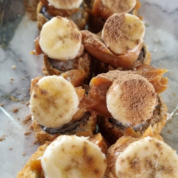 Hot Roll Com Recheio De Crem Chesse Coberto Com Banana,Doce De Leite,E Canela