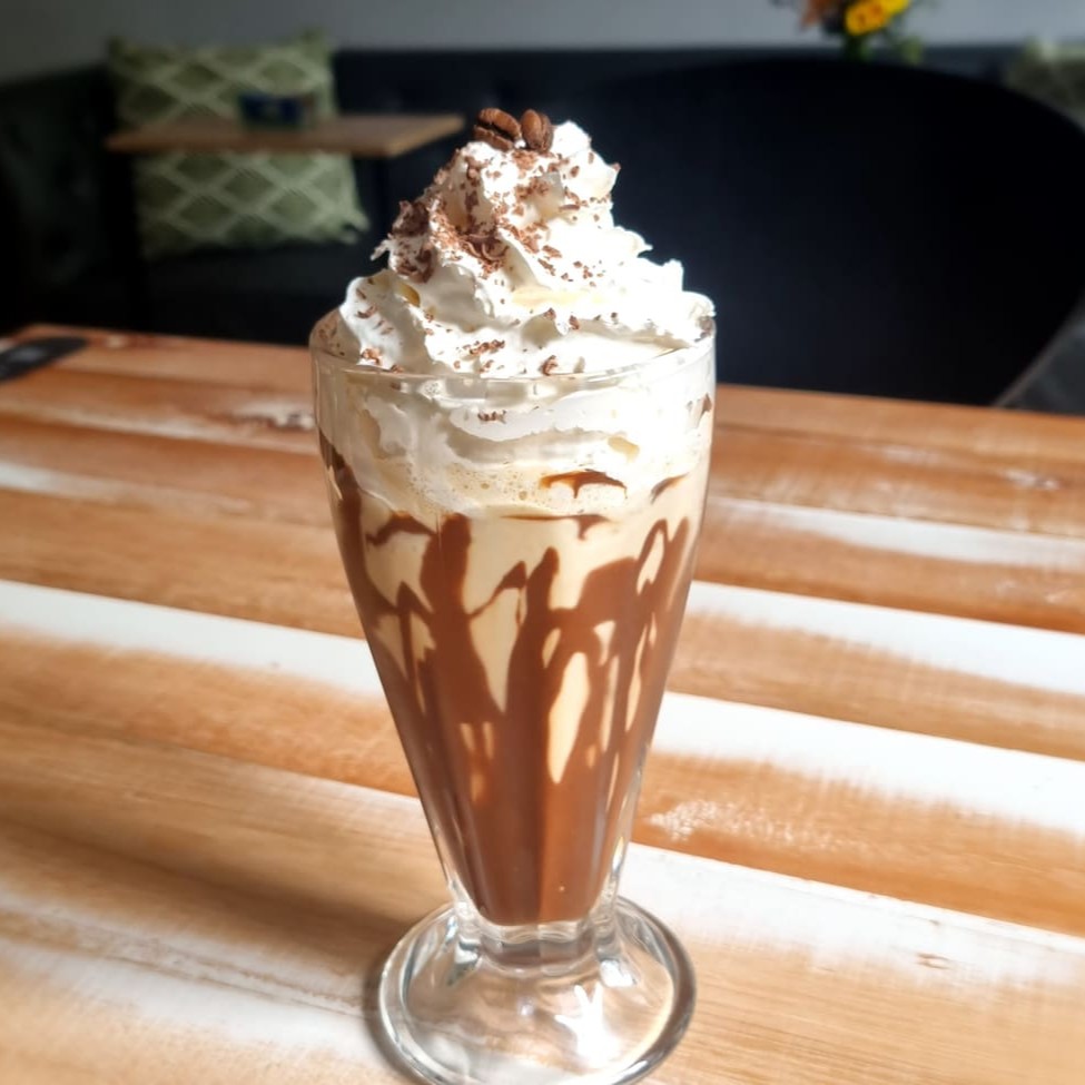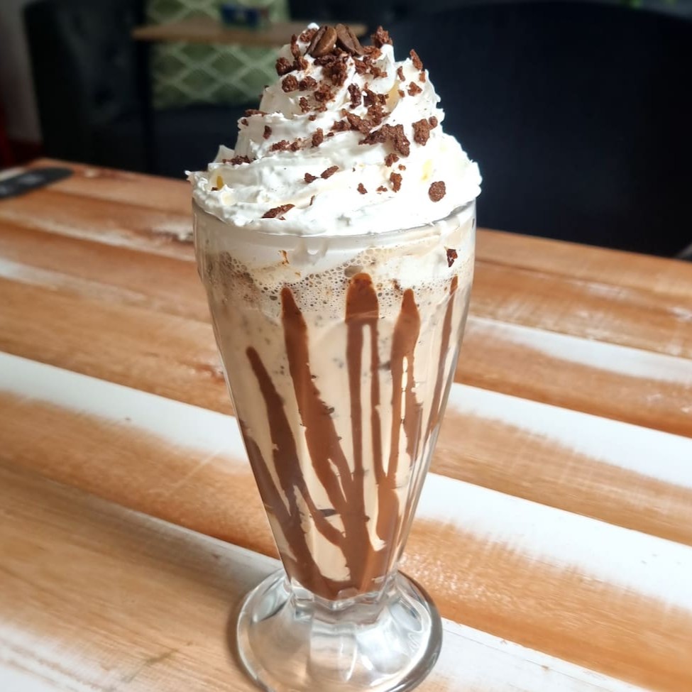 Nosso delicioso e refrescante sorvete de baunilha acompanhado de leite, Ovomaltine, espresso single, finalizado com ganache de chocolate, Ovomaltine, chantilly e raspa de chocolate ao leite - 400 ml