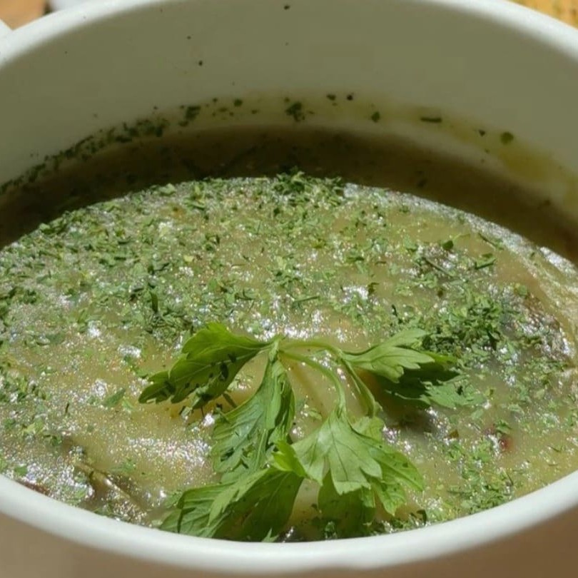 Tradicional caldo de batata com couve, lascas de bacon e toque de azeite extravirgem. Acompanha torradas crocantes. Serve aproximadamente 350 ml