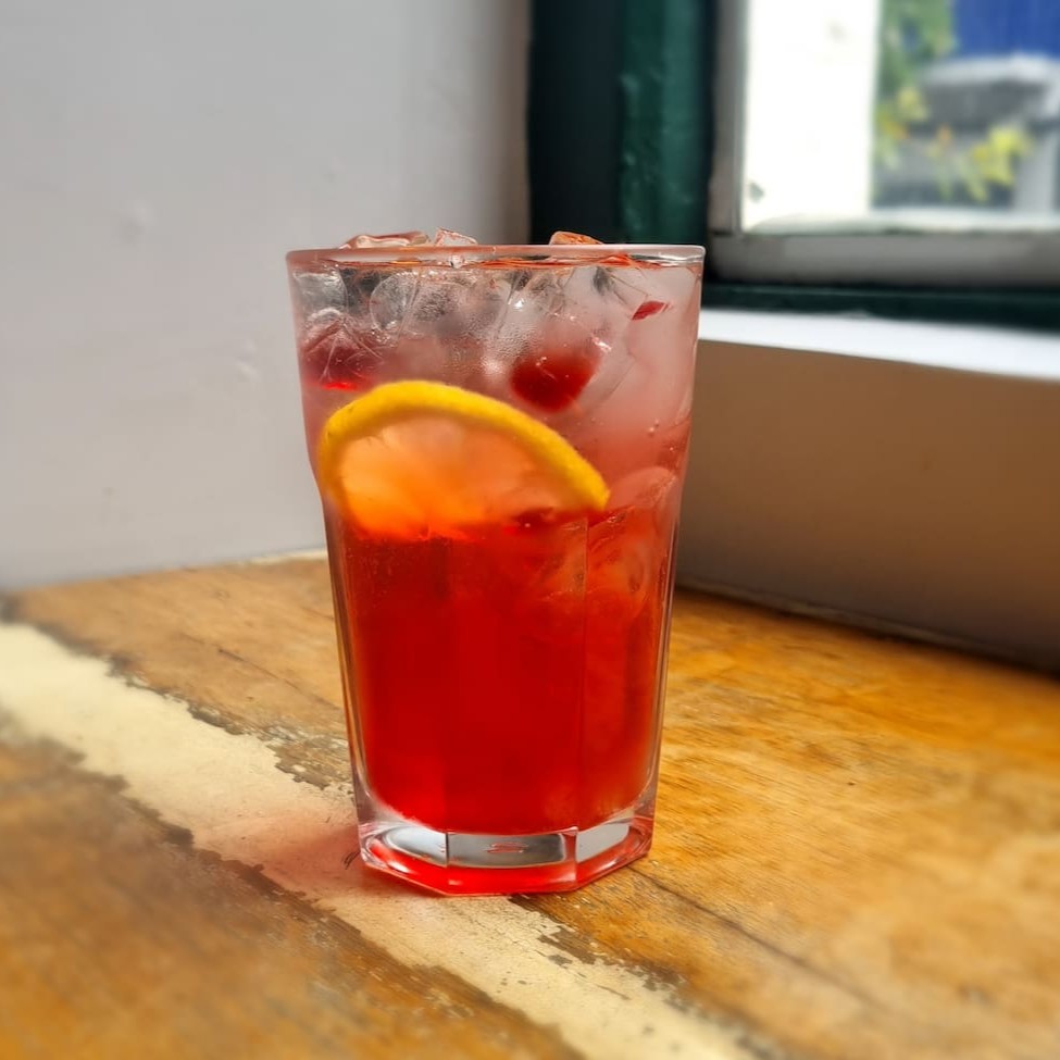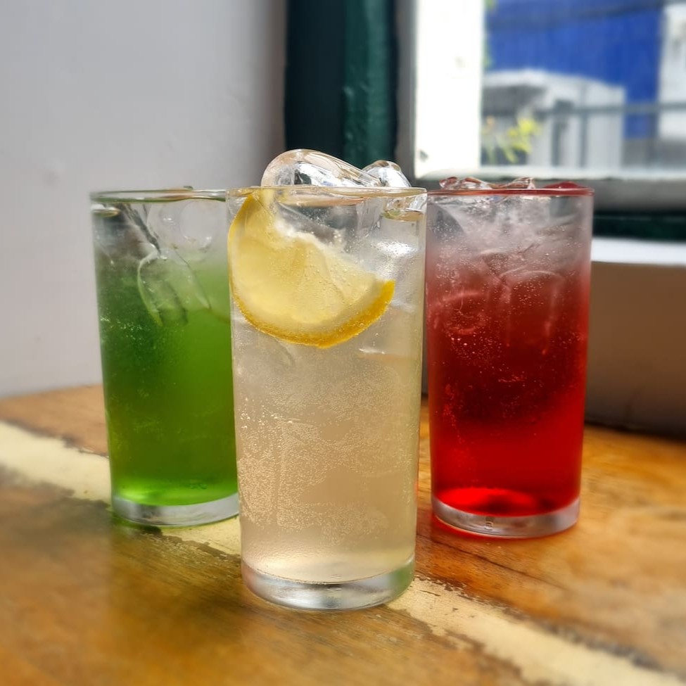 Bebida refrescante feita com água gaseificada, xarope de fruta e gelo - 200ml