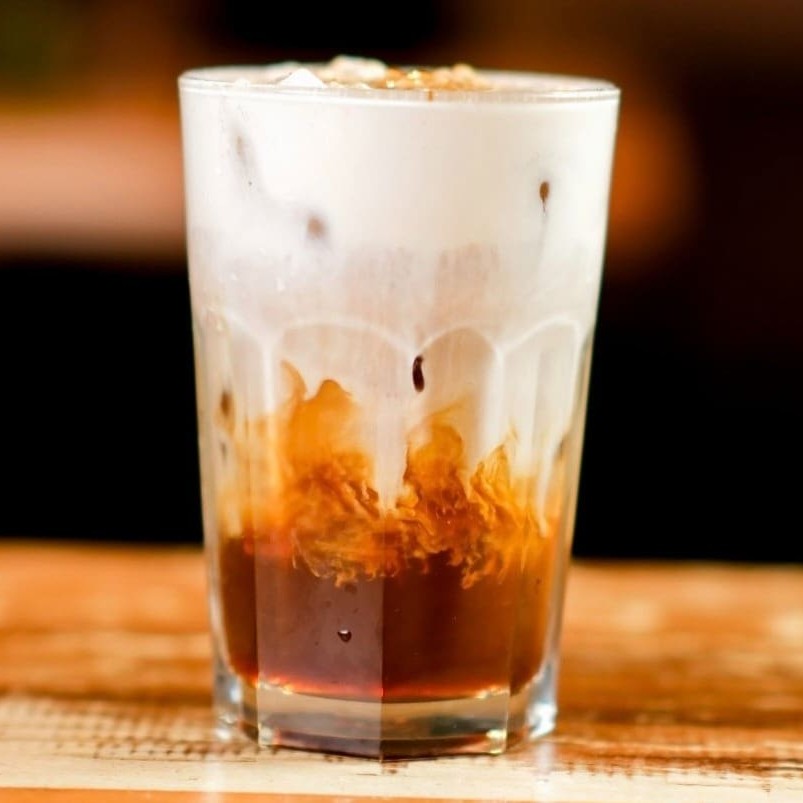 Doppio espresso extraído no gelo harmonizado com caramelo salgado, finalizado com nosso creme a base de chantilly - 420 ml