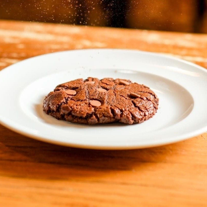 Nosso delicioso biscoito de baunilha recheado com barra de chocolate 50% e finalizado com gotas de chocolate