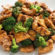 Frango, brócolis, risoto (presunto, cenoura, ovo e cebolinho) e molho.