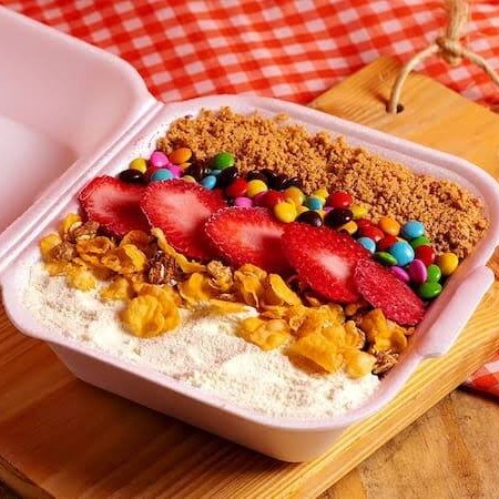 3 cereais +1 fruta +1 calda