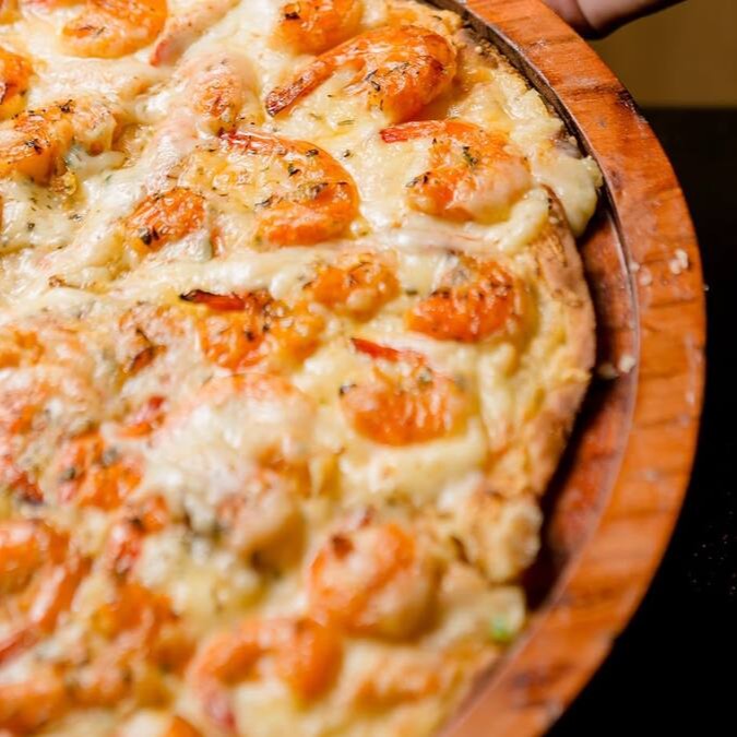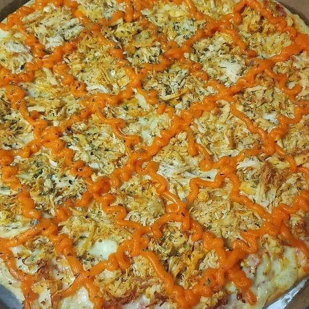 Molho artesanal, muçarela, frango, cheddar e óregano!