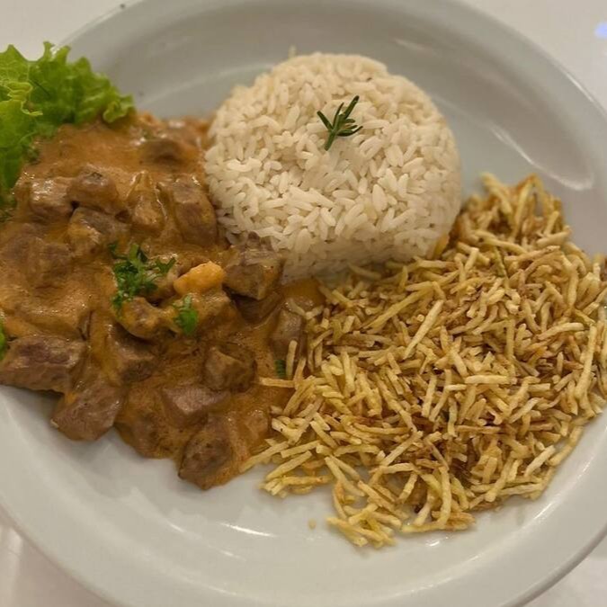 Carne macia e molho cremoso, nosso Strogonoff está dentro dos mais pedidos da casa, acompanha arroz branco soltinho e batata palha crocante.