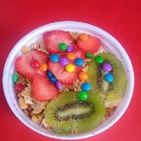 Acompanhamentos : leite em pó , xerém de amedoinm, sucrilhos , granola , jujuba, m & m , paçoca.