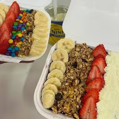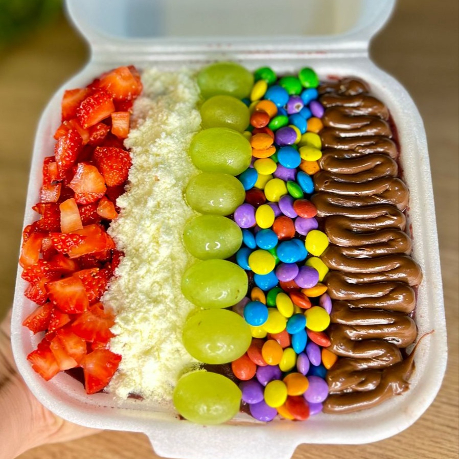 Um pote de açaí Duubom de verdade, com produtos de qualidade, monte ele nos complementos.