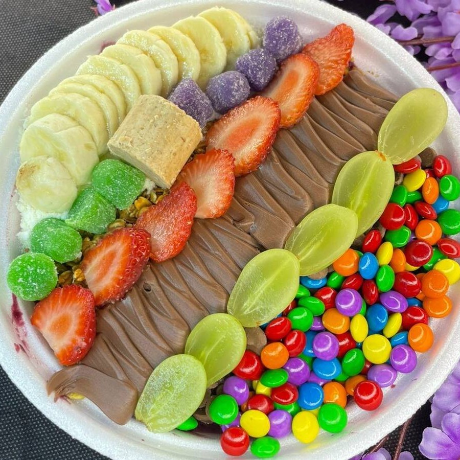 Acompanha 4 adicionais de sua escolha, 2 frutas e 2 caldas.