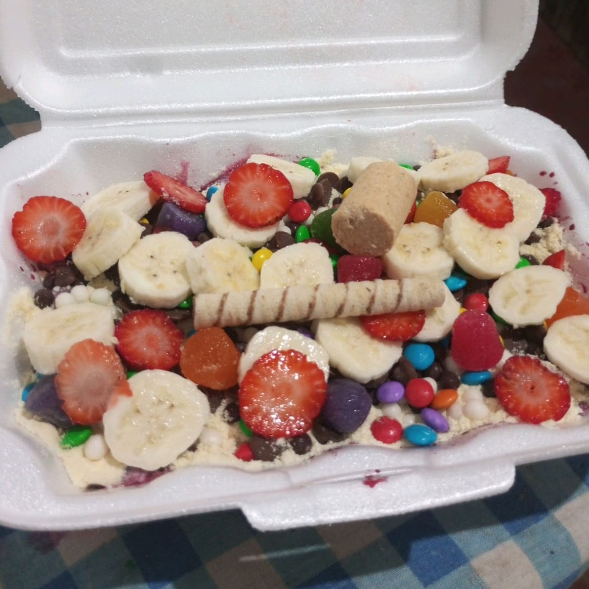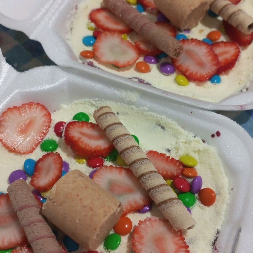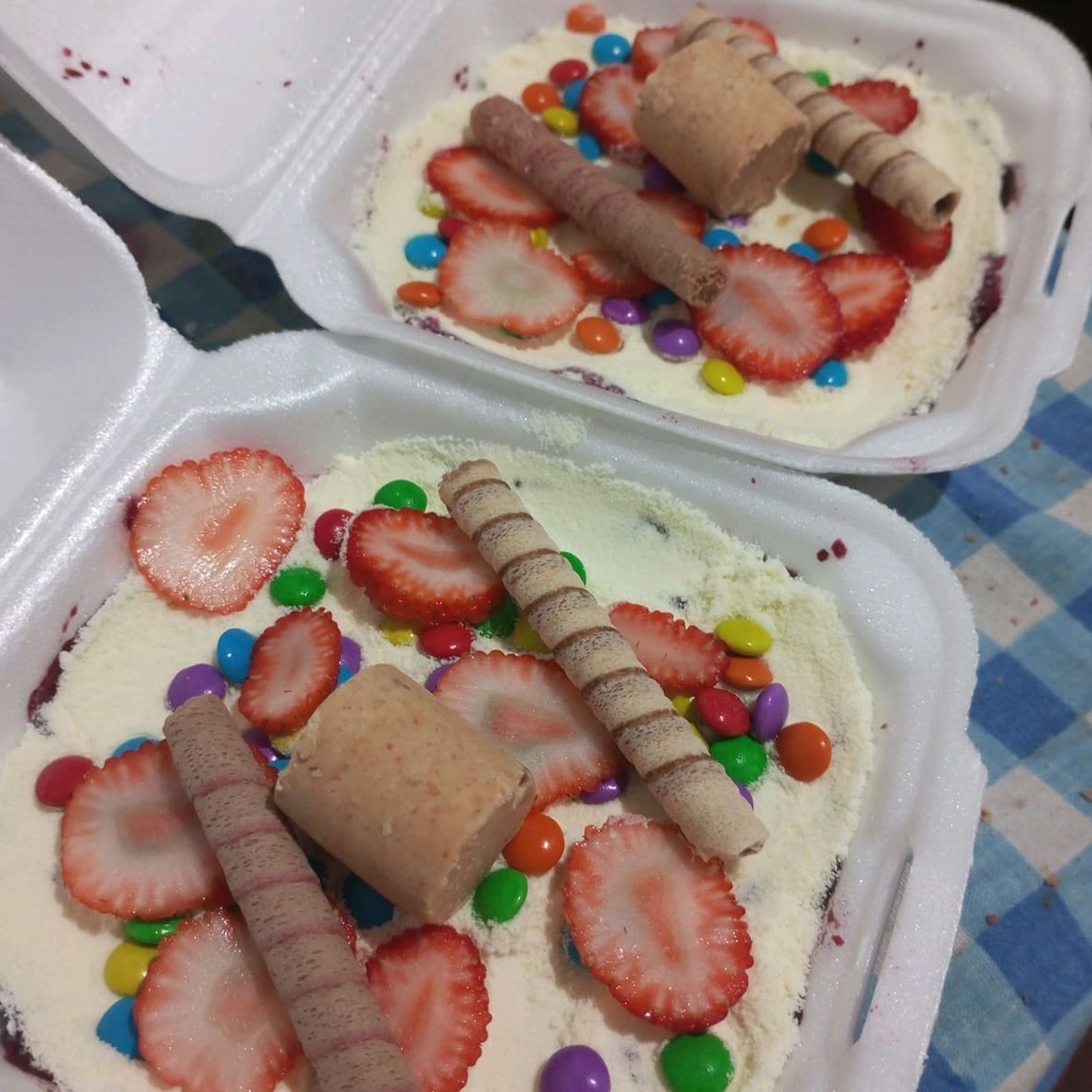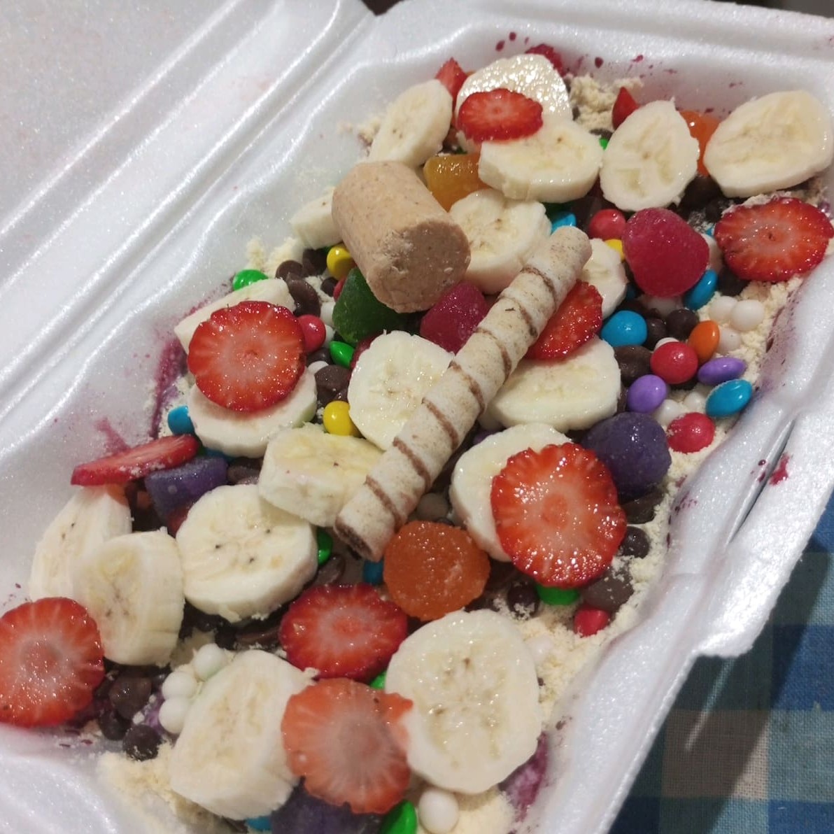 Todos acompanhamentos! A Fruta e a calda fica a escolha do cliente se quer ou não!