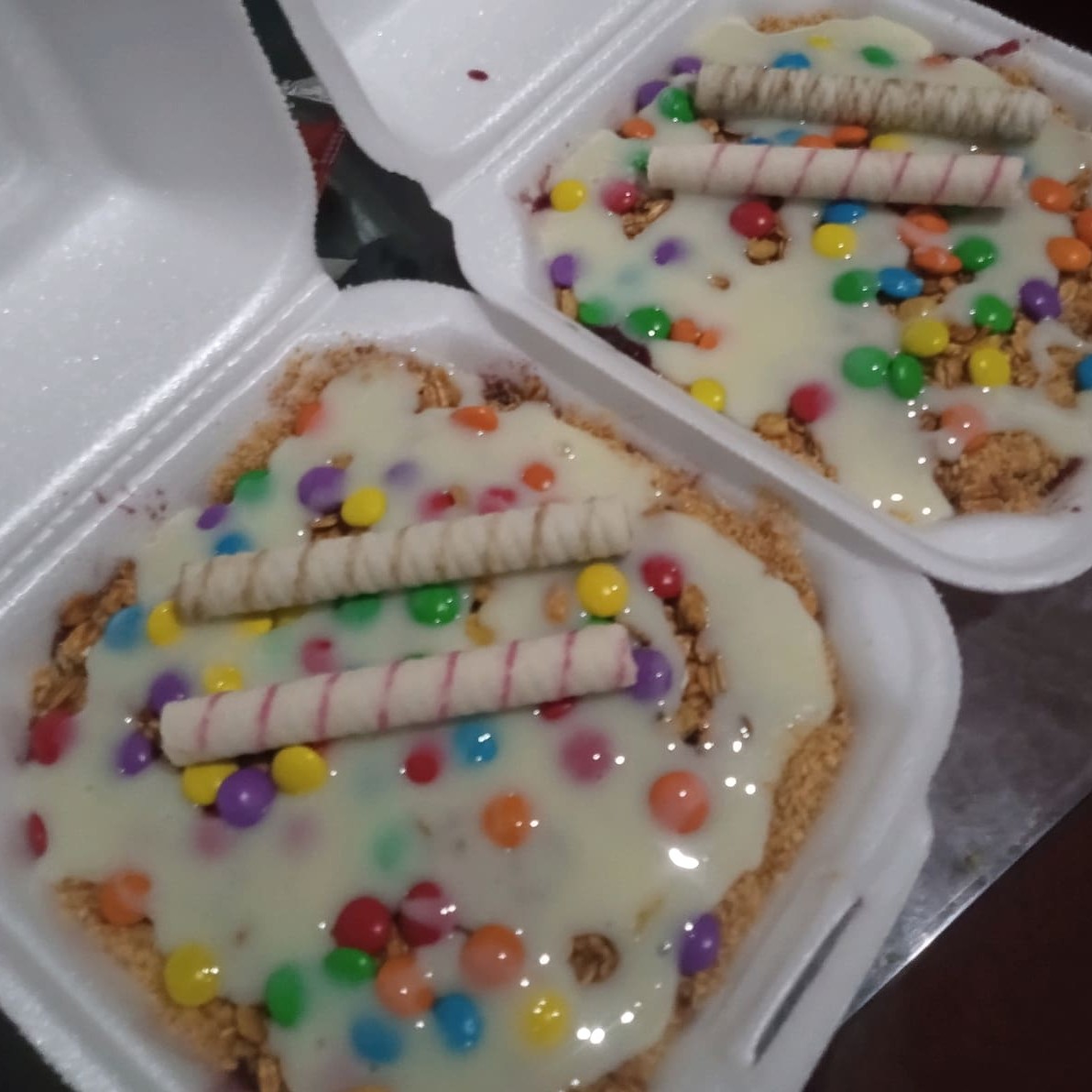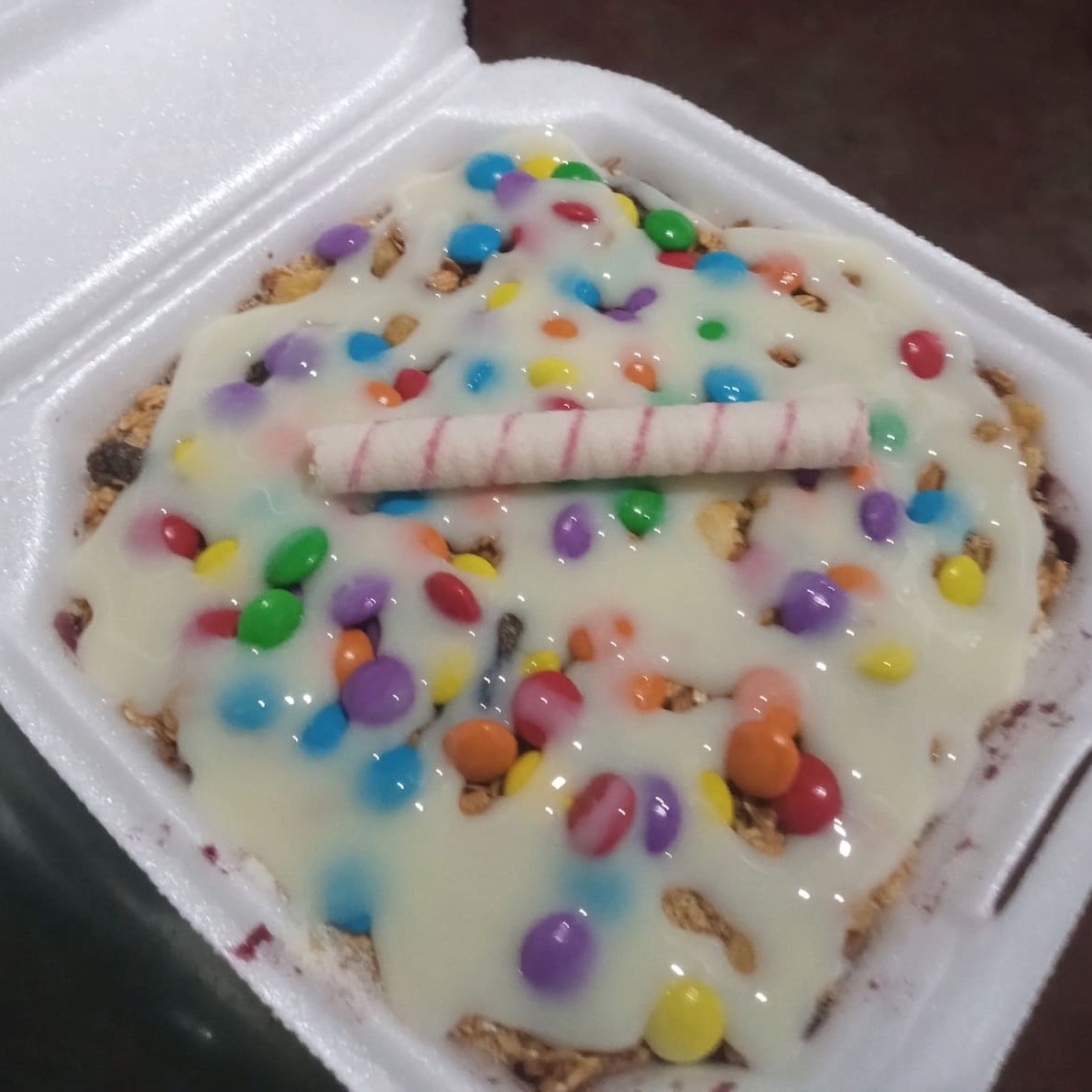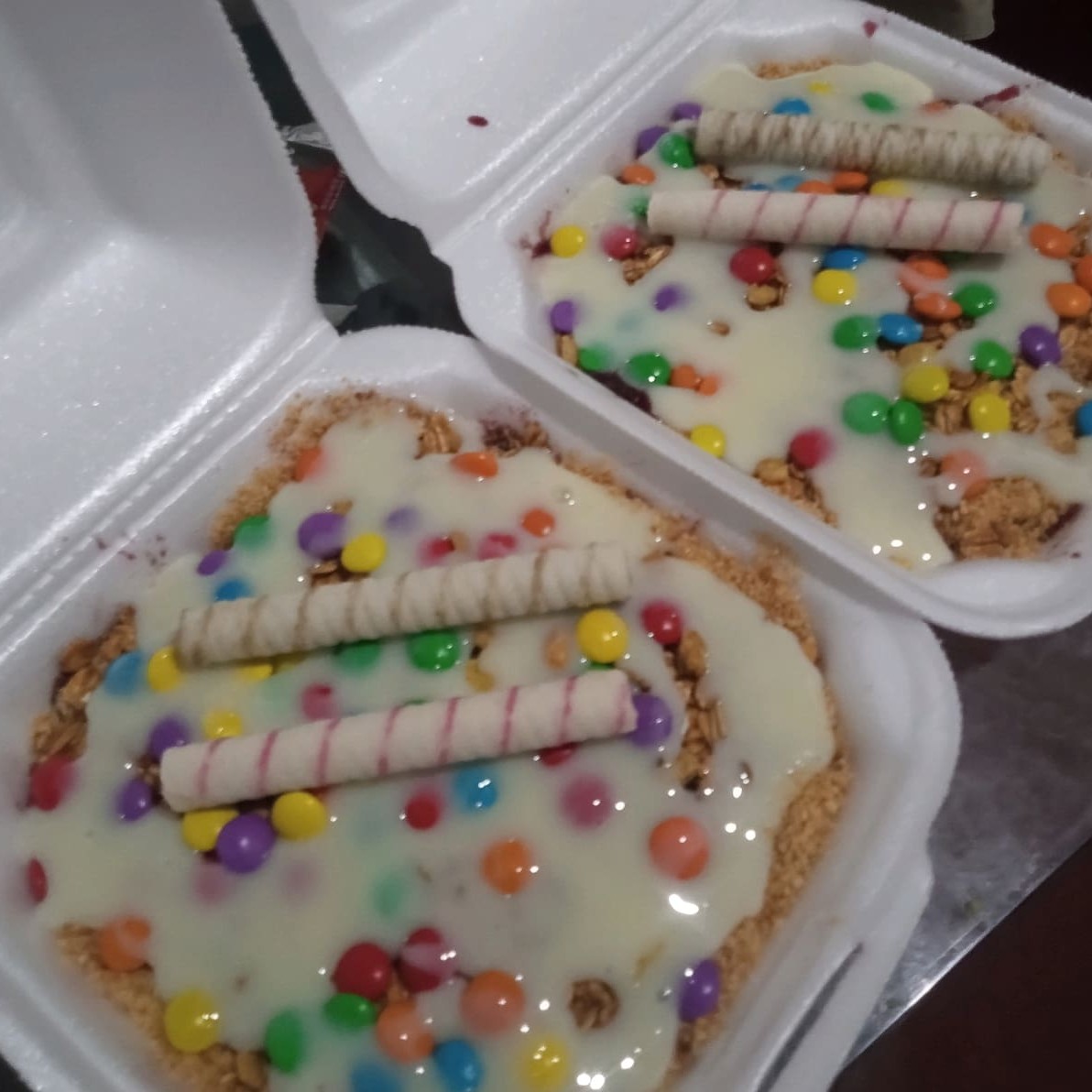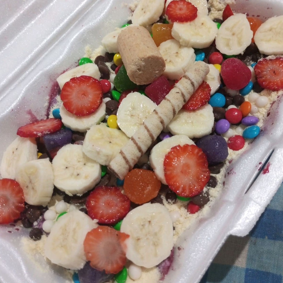 Todos acompanhamentos! A Fruta e a calda fica a escolha do cliente se quer ou não!